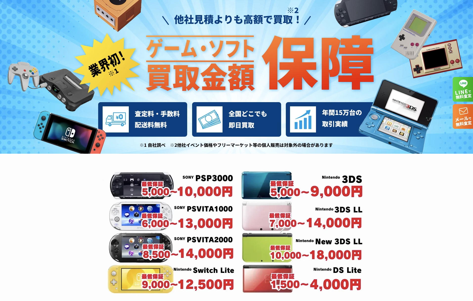 ゲームワールドは、ハード数機種の一括やハードとソフトを纏めての査定、ポータプルゲーム機にとても強い特徴があります。